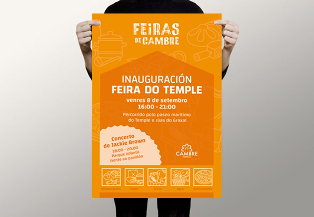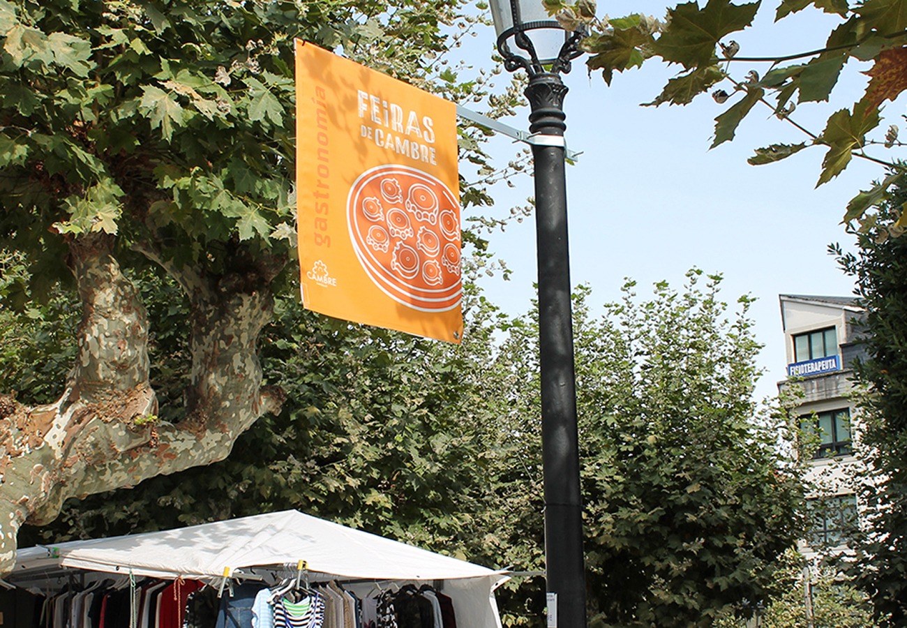 El ayuntamiento de Cambre (A Coruña) comienza un nuevo mercado ambulante y desea actualizar la imagen de este tipo de mercados para atraer a un público más joven. Optamos por crear una marca que unifique todos los mercados que celebra para emplearla en las acciones que las acompañen.